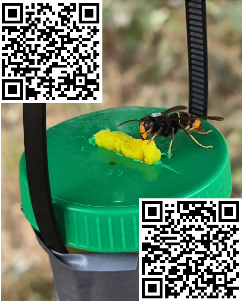 Sollten Sie eine Sichtung von Einzeltieren an den aufgestellten Dochttöpfen beobachten oder ein Nest entdecken, bitten wir dies über die beiden QR-Codes im Bild zu melden.